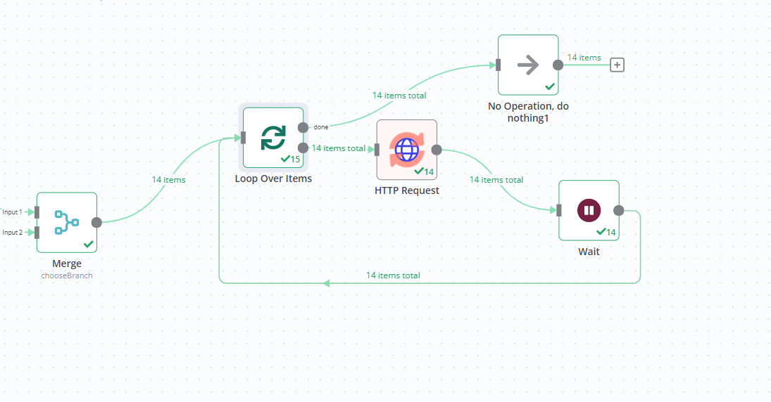Looping over items is also more logical with n8n in my developer brain. Contrary to Make, it’s just a clear and visible loop.