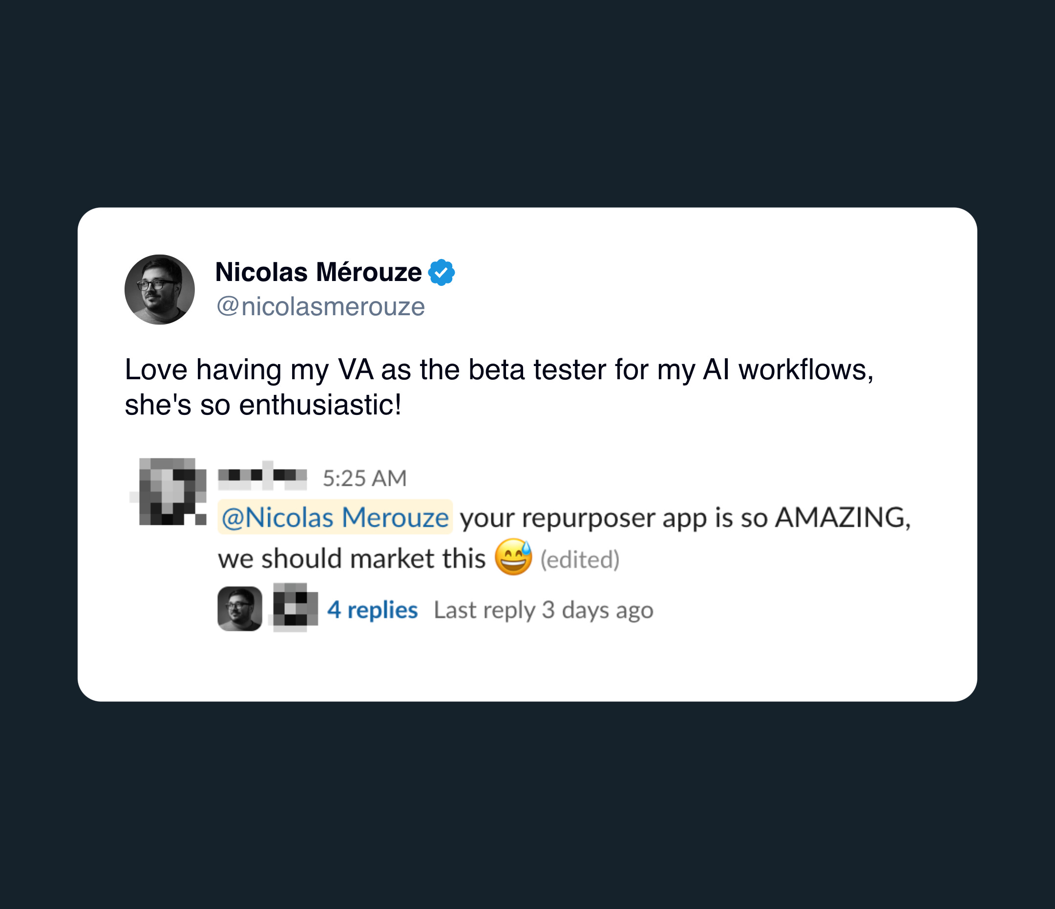 Customer story repurposing: I’m currently using my content repurposer to merge all the customer stories from a client to create new use case assets (e.g. all quotes in all stories about a specific use case).